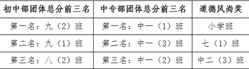 经过一天半的激烈角逐,运动会各项赛事圆满结束。本届运动会不仅赛出了水平,更赛出了风格,涌现出一批成绩优异的班集体和道德风尚突出的先进典型,获奖情况如下: