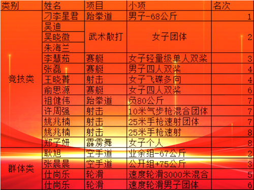 9月27日,在广东惠州举行的第十五届全运会跆拳道项目男子68公斤级决赛中,我校小将刁李星君代表安徽省以2比1战胜山东队选手梁育帅,获得冠军!这是我省体育健儿在本届全运会竞技项目中收获的首枚金牌,也是他个人运动生涯的重要突破。