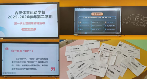 为引导学生正确认知自身能力,培育积极心理品质,2026年3月20日,合肥体育运动学校开展2025-2026学年第二学期第一次心理健康团体辅导活动,本次活动以趣味讲解与互动游戏相结合的形式,让学生在体验中探索能力的奥秘。