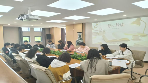 2026年4月24日,春意渐深、书香正浓之际,语文教研组在会议室举办了“静心静读”阅读主题月分享会。陈燕副校长出席,三位语文老师与十四位学生代表齐聚一堂,以书为媒,共话成长。